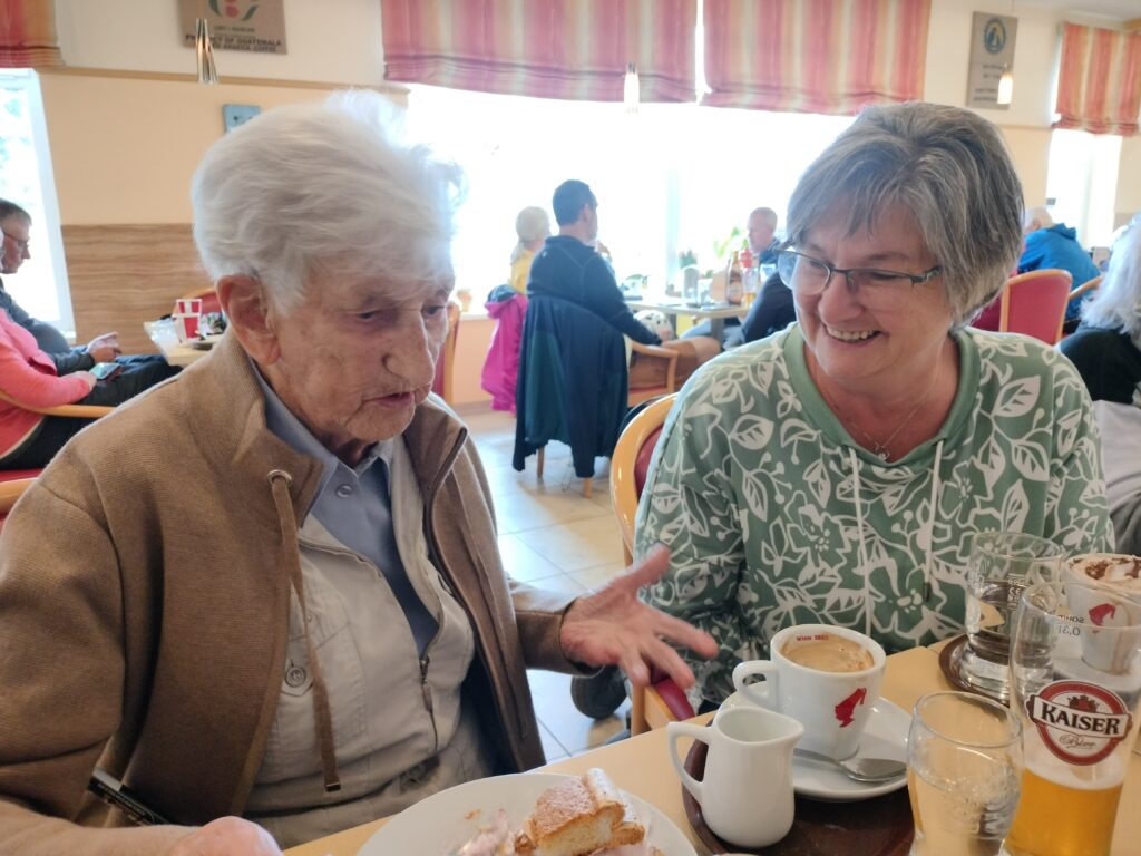 Am 22. Mai 2025 machte sich eine Damenrunde auf dem Weg zu einem Ausflug. Wir besuchten das Café Lechner in Marbach an der Donau. Vor Ort ließen wir uns einen Kaffee und eine leckere Mehlspeise schmecken. Unsere Bewohnerinnen konnten sich gut unterhalten und haben den Nachmittag sichtlich genossen. Unsere ehrenamtliche Mitarbeiterin Frau Erni Lindner und unsere Seniorenbetreuerin Frau Lisa Naderer begleiteten die Bewohnerinnen zu dem Ausflug.