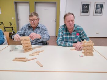 Am 17. November 2025 fand die monatliche Gruppeneinheit mit unserer Ergotherapeutin Frau Eva Schweng statt. Die Einheit wurde mit Aufwärmübungen für den Schultergürtel, die Handgelenke und Finger gestartet. Anschließend durften unsere Bewohnerinnen und Bewohner Kräftigungsübungen für die Finger mit Gummiringen durchführen. Danach wurde die Feinmotorik mit Kapla-Bausteinen trainiert bevor es zum Arm- und Handkoordinationstraining mit … Weiterlesen