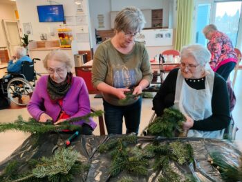 Unsere lieben Bewohnerinnen haben für die bevorstehende Adventszeit gemeinsam mit Frau Erni Lindner (Ehrenamt) und Frau Lisa Naderer (Seniorenbetreuerin) gemeinsam Adventkränze gebunden. Die Bewohnerinnen haben dabei die Äste abgezwickt, den Kranz gebunden und zu guter Letzt die Adventkränze schön geschmückt. Unsere Bewohnerinnen haben eine große Freude mit den selbstgemachten Kränzen.