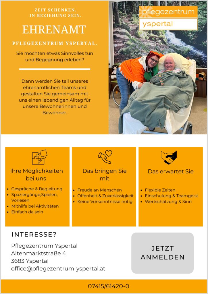 Dann werden Sie Teil unseres ehrenamtlichen Teams und gestalten Sie gemeinsam mit uns einen lebendigen Alltag für unsere Bewohnerinnen und Bewohner.