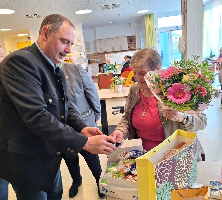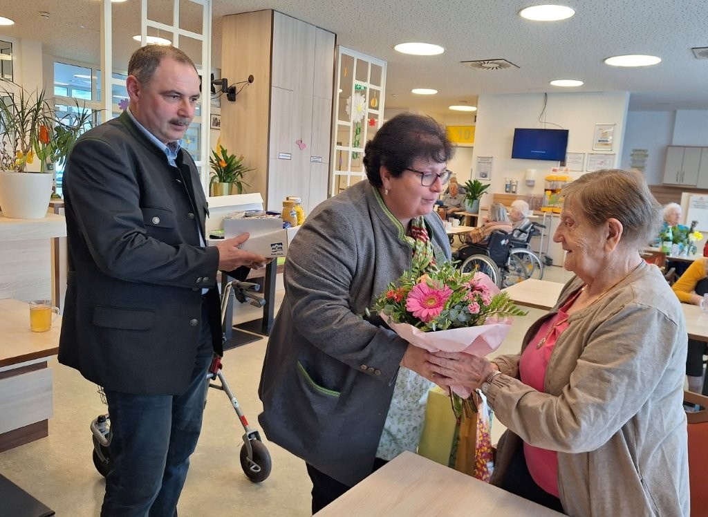 Unsere Bewohnerin Frau Gertrude Reinberger feierte am 14. März 2026 ihren 85. Geburtstag. Sie freute sich sehr darüber, dass auch die Bürgermeisterin Frau Rosemarie Kloimüller und der Vizebürgermeister Herr Gerhard Porranzl aus der Gemeinde St. Oswald zu ihr kamen um ihr ganz herzlich zu gratulieren! Frau Reinberger war den Großteil ihres Lebens in der Gemeinde St. Oswald mit ihrer Familie Zuhause.