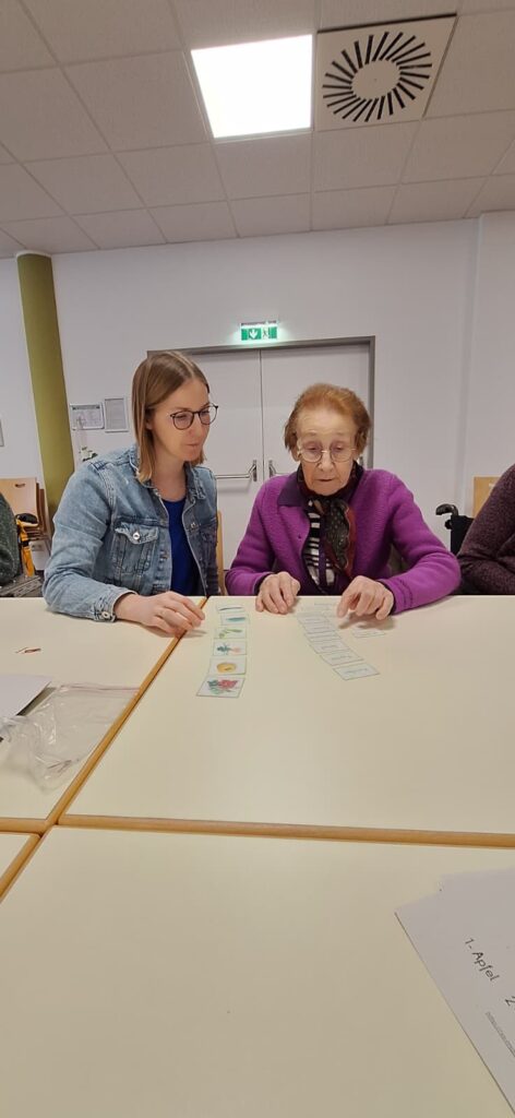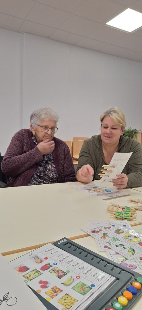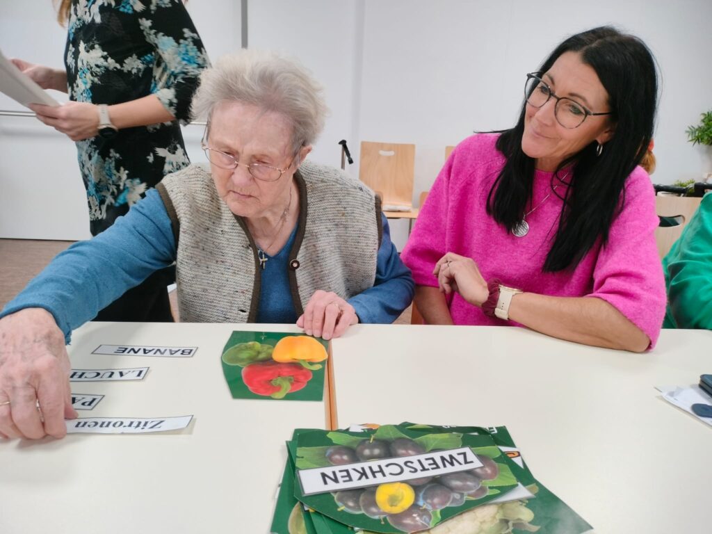 Am 12. Jänner 2026 fand unsere monatliche Einheit mit unserer Ergotherapeutin Frau Eva Schweng statt. Bei den Einheiten im neuen Jahr legen wir das Augenmerk auf die geistige Aktivierung. Die Einheit beinhaltete verschiedenste Übungen zum Thema „Obst und Gemüse“. Frau Schweng hatte dazu verschiedenste Materialien mitgebracht. Mithilfe von unserer ehrenamtlichen Mitarbeiterin Frau Theresia Taubenschmid, unserer LSB Praktikantin Frau Nicole Hauleithner und unseren Seniorenbetreuerinnen Frau Sylvia Kaufmann-Grabner und Frau Lisa Naderer konnten die Bewohnerinnen und Bewohner die Übungen mit Freude umsetzen. Es wurde unter anderem ein Memory, Kreuzworträtsel, Wort Gitter, Logico und verschiedene Zuordnungsspiele angeboten.