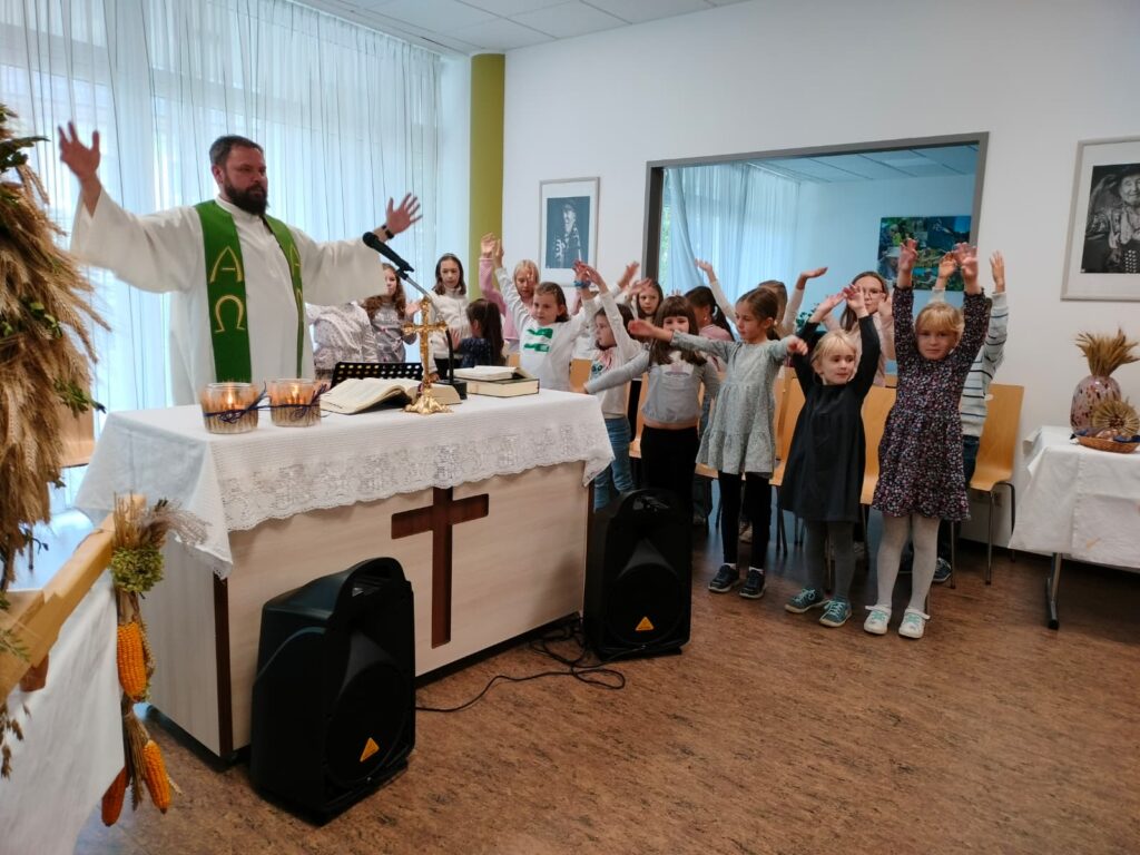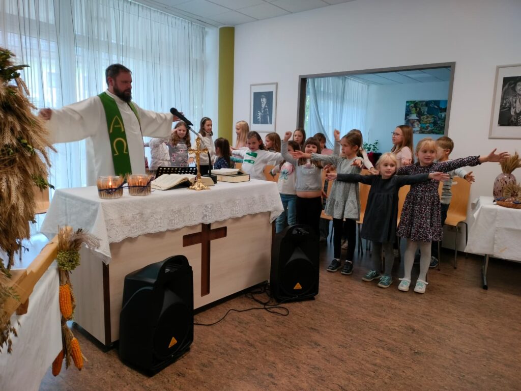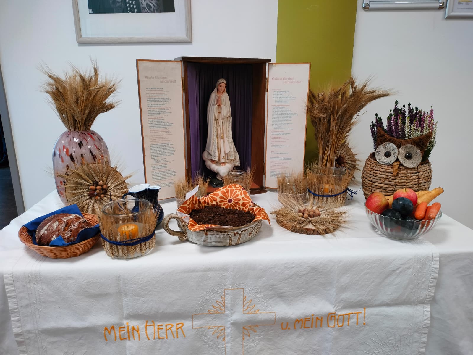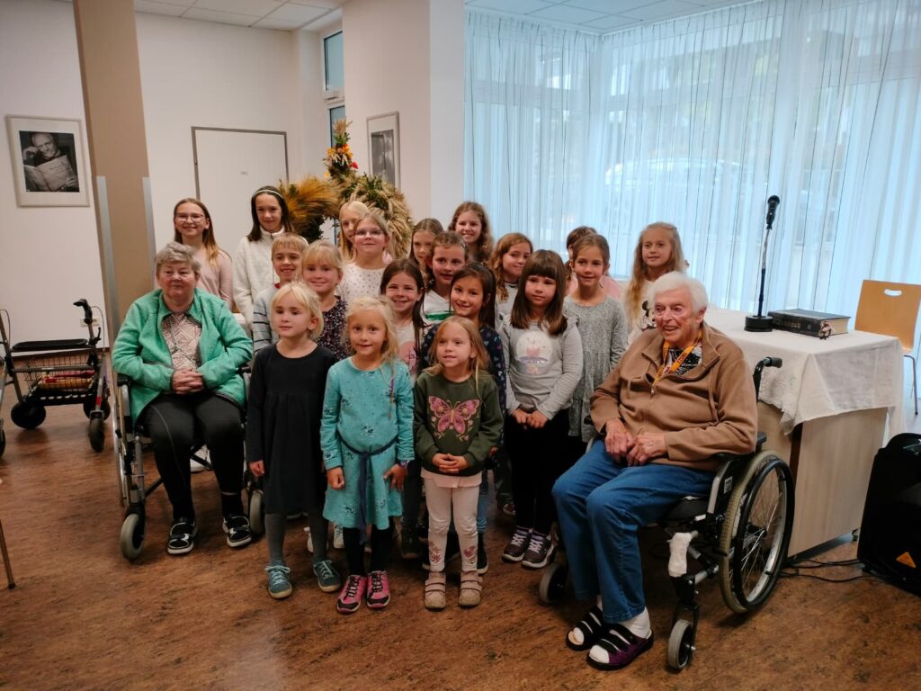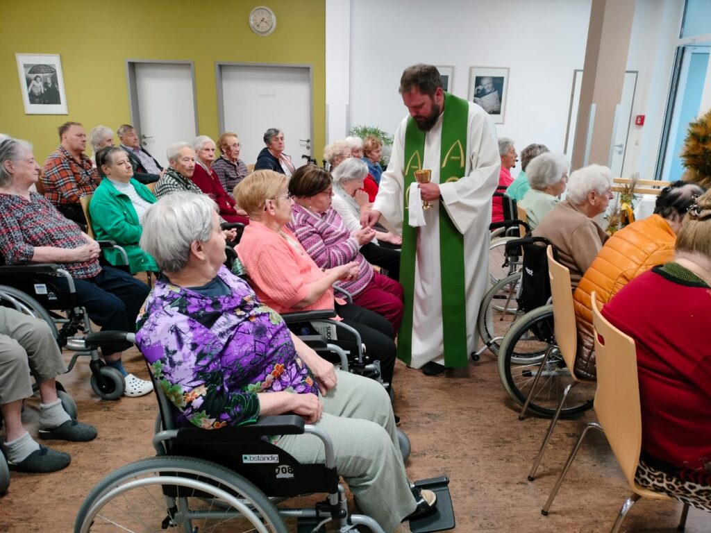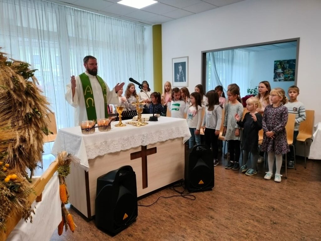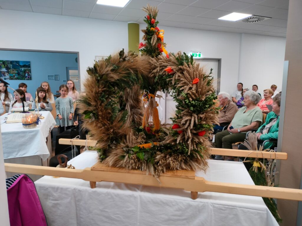 Am 02. Oktober 2025 fand unsere monatliche heilige Messe statt. Es wurde ein ganz besonderes Fest im Jahreskreis gefeiert – nämlich das Erntedankfest. Die Erntekrone aus der Kirche in Altenmarkt sorgte für ein stimmungsvolles Ambiente. Auch unsere Seniorenbetreuerinnen Frau Lea Gattermann und Frau Lisa Naderer sowie unsere Bewohnerinnen gestalteten das Erntedankfest mit. Wir freuten uns auch sehr über den Besuch vom Yspertaler Kinderchor, unter der Leitung von Frau Verena Höningl, die unsere hl. Messe wunderbar musikalisch umrahmt haben. Ein herzlicher Dank gilt auch unserem Pfarrmoderator Herrn Mag. Maciej Witek für die gemeinsame Feier des Erntedankfestes.